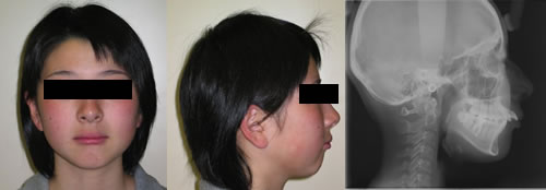 Krankeは来院当時14才の女性で上顎前歯の前突改善のために来院する。